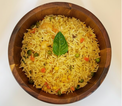 Fried rice is a flavorful dish made by stir-frying cooked rice with vegetables, protein (such as eggs, chicken, shrimp, or beef), and seasonings.