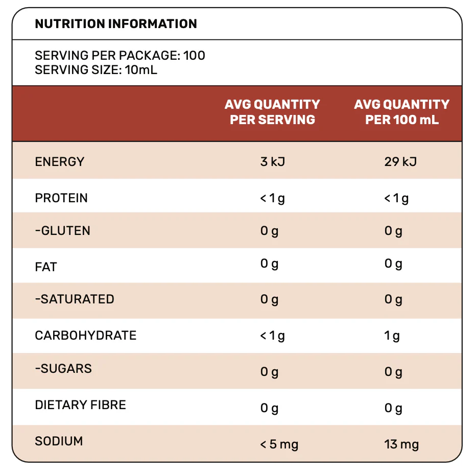 Filtered water, natural and artificial flavouring, permitted stabilizer (INS 415), sucralose, acesulfame k, permitted food preservatives (E211, E223), citric acid, colors added